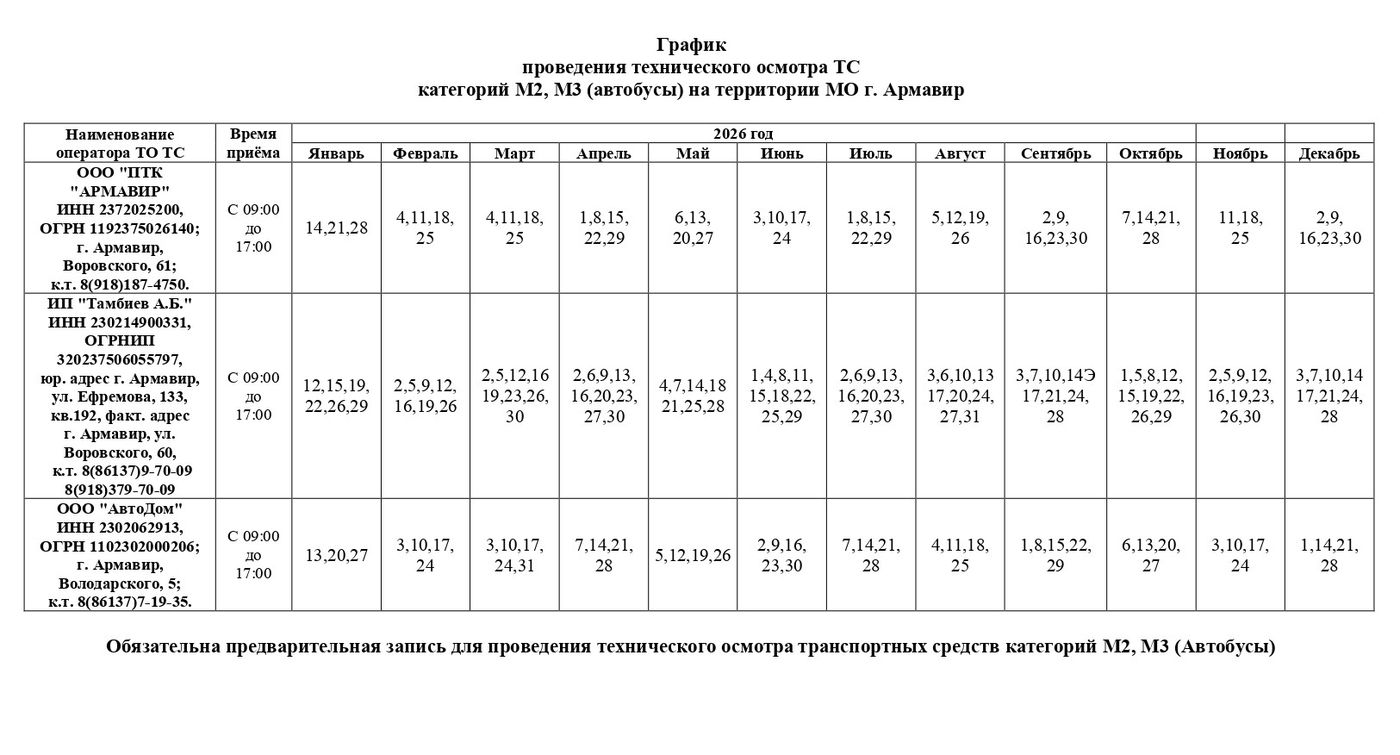 График проведения технических осмотров категории D (M2,M3) ИП Тамбиев А.Б.